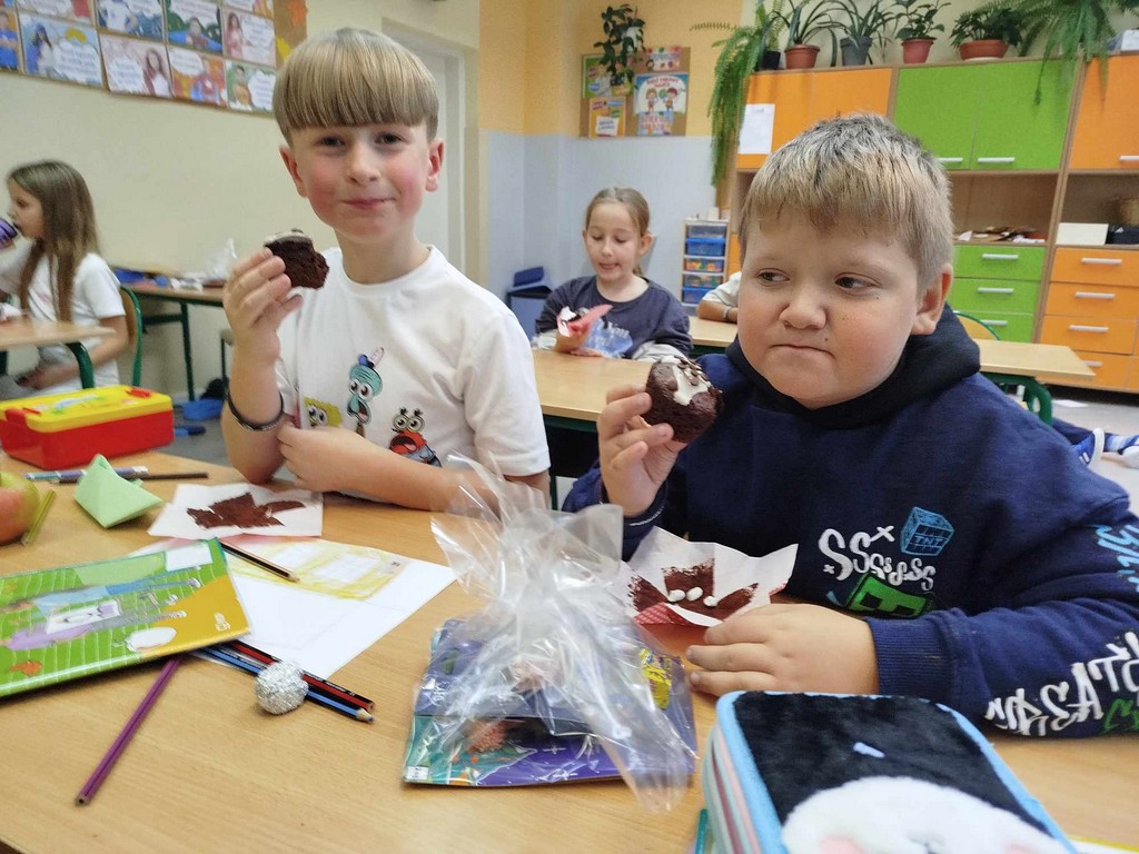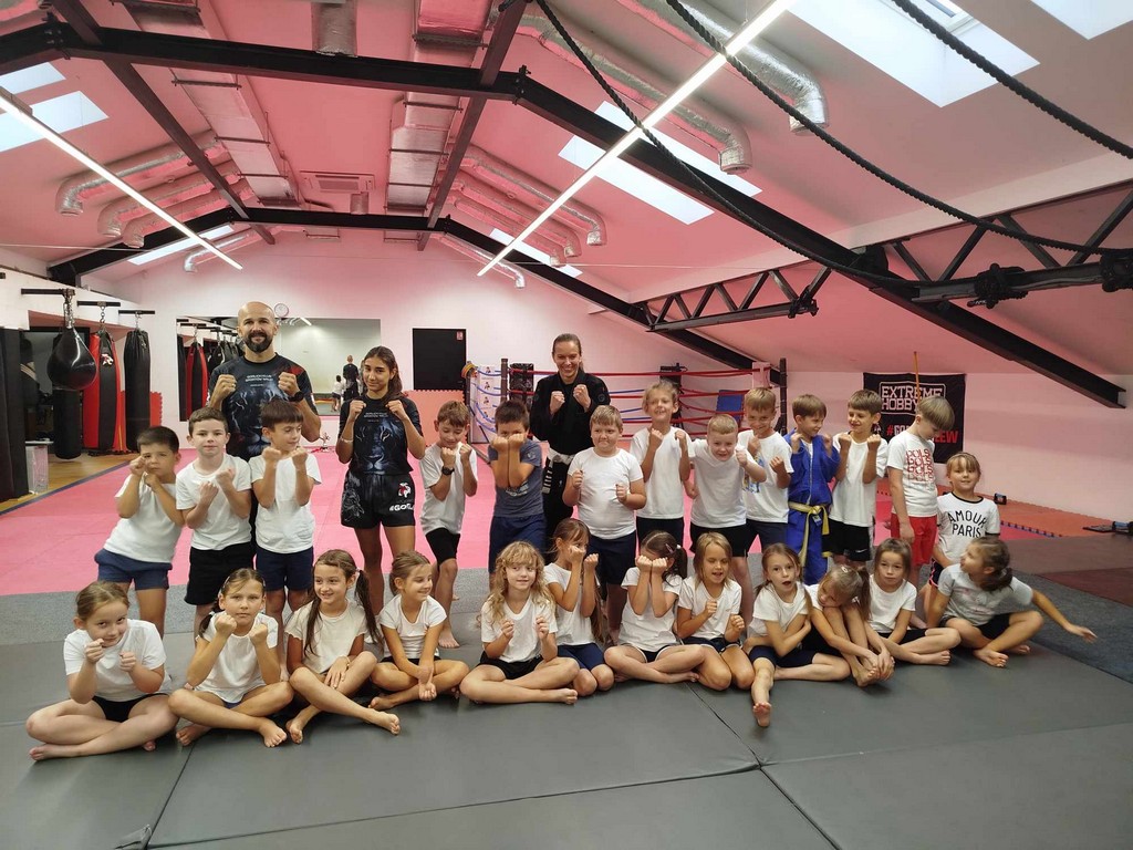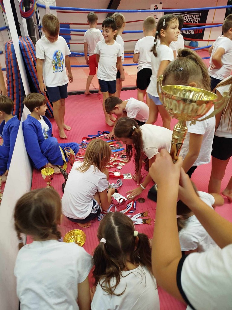 W dniu 30 września 2025 roku, z okazji Dnia Chłopaka, w Gorlickim Klubie Sportów Walki odbyła się wyjątkowa lekcja poprowadzona przez trenerów – Paulinę Mordarską i Tomasza Mordarskiego – doświadczonych szkoleniowców i zawodników sportów walki, a przede wszystkim rodziców ucznia naszej szkoły. Zajęcia miały charakter otwarty i integracyjny. Beneficjenci spotkania – uczniowie i uczennice klasy 2a – wzięli udział w profesjonalnie prowadzonym treningu, który łączył elementy kickboxingu, boksu oraz ogólnorozwojowych ćwiczeń sprawnościowych. Trener Tomasz Mordarski kładł szczególny nacisk na technikę, dyscyplinę oraz współpracę w grupie. Zobaczyliśmy podstawowy sprzęt ćwiczeniowy, różnego typu ochraniacze, mogliśmy założyć specjalne stroje i poznać niektóre sportowe pozycje i ruchy. Podziwialiśmy też imponująca kolekcję pucharów i medali. Atmosfera podczas zajęć była pełna energii, zaangażowania i dobrej zabawy. Wspaniale ten czas wykorzystali nie tylko chłopcy w dniu swojego święta, ale również dziewczynki. Na zakończenie wszyscy uczestnicy otrzymali pamiątkowe klubowe gadżety – opaski „Gorlickich Lwów”. Dzień Chłopaka w klasie 2a upłynął w sportowym duchu i z pewnością zostanie na długo zapamiętany przez wszystkich uczestników. Chętnie wrócimy na salę treningowa przy ul. Jagiełły 5, może przy okazji… Dnia… Dziewczynek…? A w klasie czekały na nas jeszcze okazjonalne upominki i łakocie. Serdecznie dziękujemy!!!