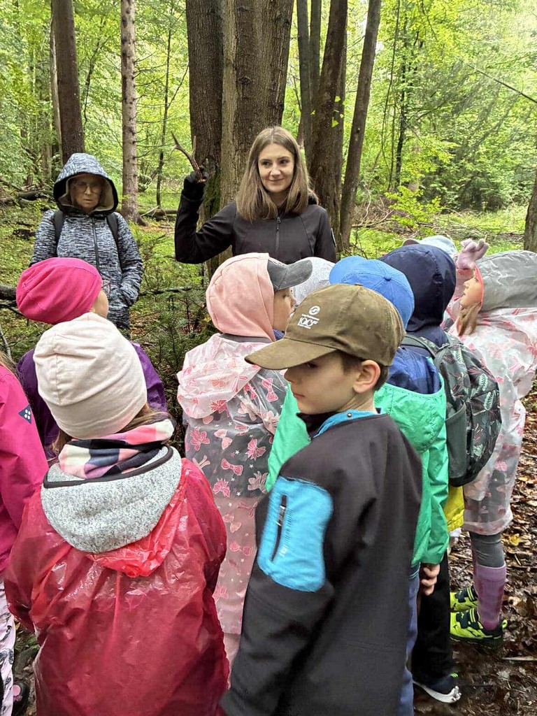 W Dzień Chłopaka – 30 września – klasa 2B wyruszyła w kolejną przyrodniczą wyprawę mająca na celu poznanie flory i fauny naszego regionu. Tym razem pojechaliśmy do Krempnej, gdzie znajduje się Ośrodek Edukacyjno-Muzealny Magurskiego Parku Narodowego. Najpierw wędrowaliśmy Ścieżką przyrodniczą o nazwie „Kiczera”. 2-godzinny spacer zaczynał się od zabytkowego starego cmentarza i prowadził poprzez różne ekosystemy: łąkę, staw, las. Przewodniczka opowiadała o roślinach i zwierzętach, które tam żyją. Jesienna łąka pełna zimowitów przypominała wiosenne łąki z krokusami. Okazało się też, że dziko rosnący barwinek – znamy z ogródka. Ze wzgórza przy punkcie widokowym Korbowa Łąka przybiliśmy ozdobne pieczątki MPN. Zaletą mglistej i wilgotnej aury były dobre warunki do obserwacji salamandry – kilkakrotnie spotkaliśmy tego rzadkiego płaza. Poznaliśmy kumaki i traszki, dowiedzieliśmy czym różnią się rogi od poroża, oglądaliśmy grzyby, rozpoznawaliśmy różne gatunki drzew. Wędrówka skończyła się ogniskiem i samodzielnym pieczeniem kiełbas. Później w budynku muzeum kontynuowaliśmy „lekcję przyrody” – z filmem, interaktywną ekspozycją na trzech poziomach, spektaklem przyrodniczym życia Beskidu Niskiego podczas czterech pór roku. Tyle ciekawych tematów w jednym dniu! 2B podsumowała ten dzień tak: „Taki Dzień Chłopaka to ja rozumiem!”.