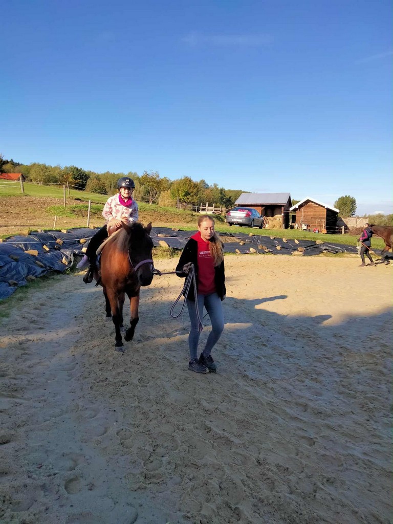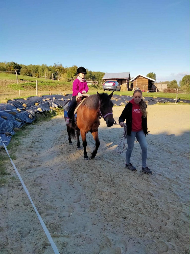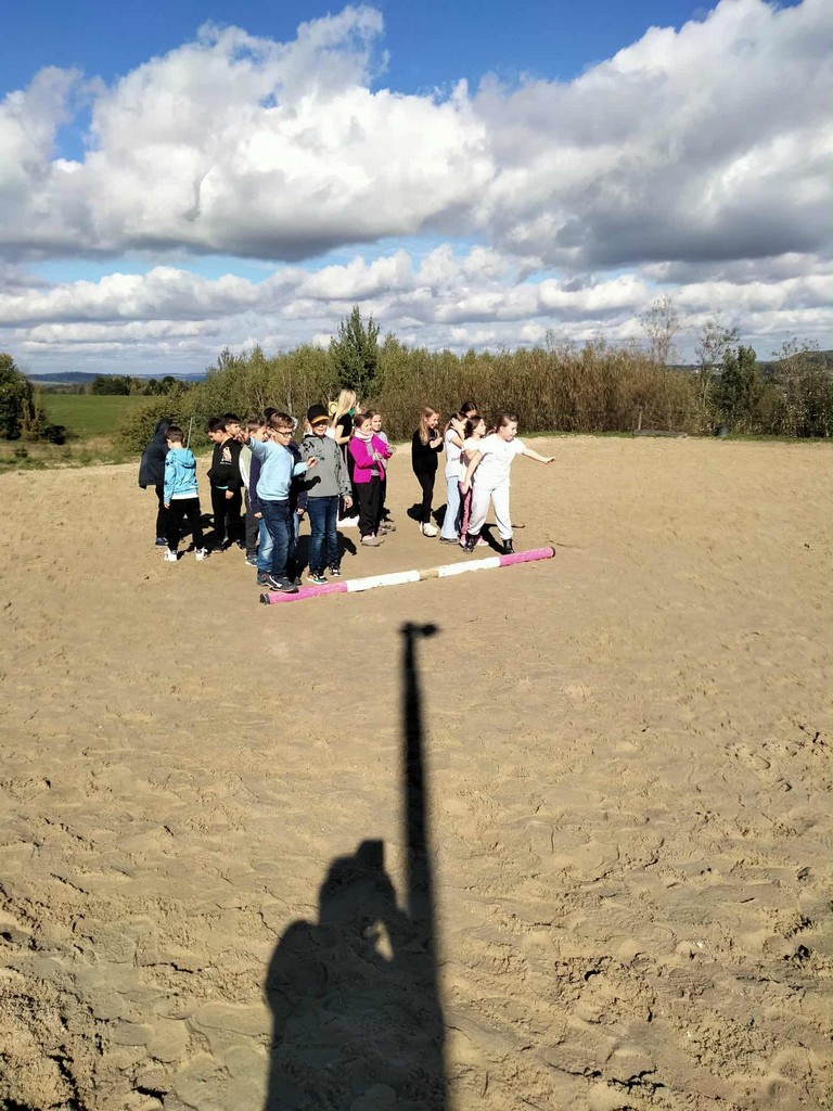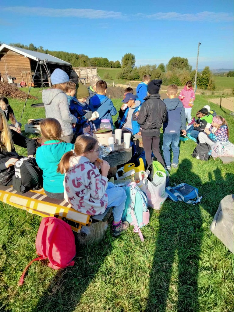 Uczestnicy mieli okazję zobaczyć stajnię, pastwiska, poznać sprzęt jeździecki, spotkać się z końmi, nauczyć się zasad zachowania w obecności koni, przejechać się konno pod czujnym okiem instruktora jazdy konnej. Plac, który na co dzień służy do jazdy konnej zamienił się w miejsce do świetnej zabawy, a drągi, opony, piłki, worki, które w stajni wykorzystywane są do treningów koni stały się świetną inspiracją do wielu zabaw. Między czasie na ognisku piekła się kiełbasa, którą ze smakiem wszyscy jedli, popijając pysznym kompotem. Pogoda w tym dniu była piękna, więc można było podziwiać piękne, rozległe tereny. To była udana wycieczka.