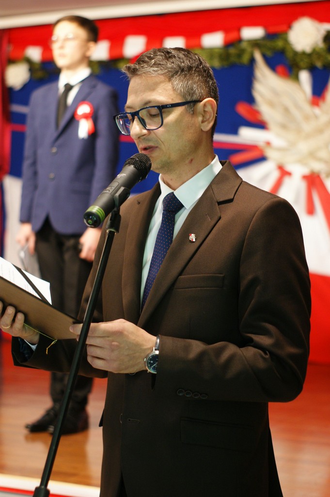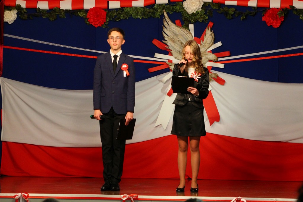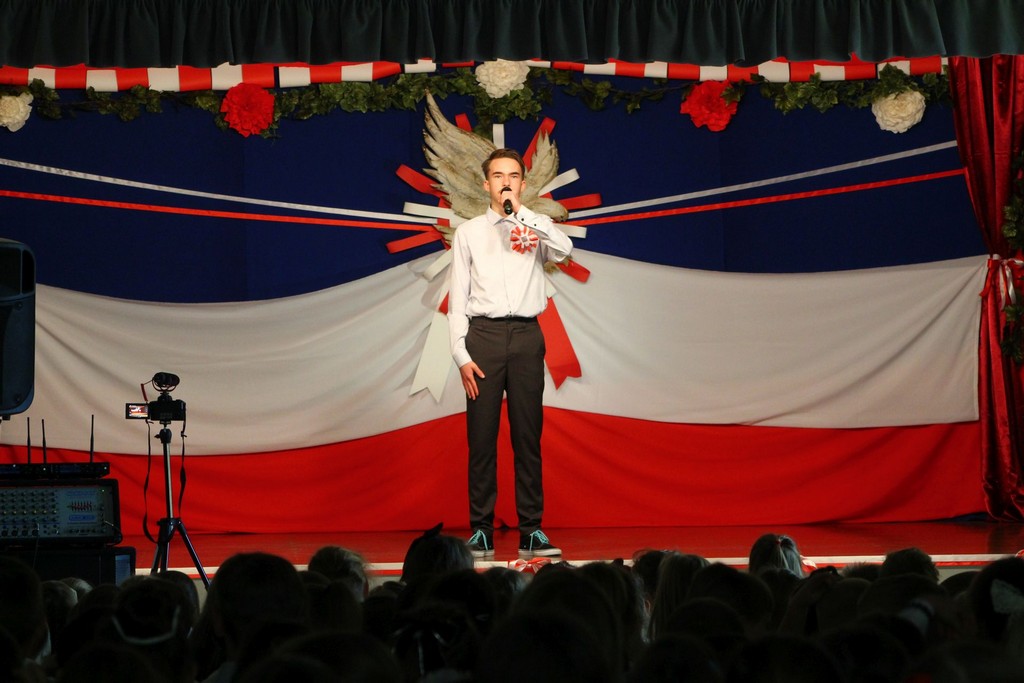 11 listopada to dzień, w którym co roku upamiętniamy odzyskanie przez Polskę niepodległości. Z tej okazji w piątek, 7 listopada, w naszej szkole odbyła się uroczysta akademia, podczas której uczniowie i nauczyciele wspólnie oddali hołd bohaterom walczącym o wolność ojczyzny. W programie uroczystości znalazły się piękne występy artystyczne – recytacje poezji patriotycznej, wzruszające pieśni oraz inscenizacje przybliżające wydarzenia sprzed ponad stu lat. Podniosła atmosfera towarzyszyła wszystkim podczas wspólnego odśpiewania hymnu narodowego, a emocjonujące interpretacje młodych artystów wprowadziły publiczność w nastrój refleksji i zadumy. Podczas akademii dyrektor szkoły, pan Krzysztof Mrozek, odczytał list od Prezesa Gorlickiego Koła Związku Sybiraków, pana Zbigniewa Lewczykowskiego. Autor listu przypomniał, jak wielką wartością jest niepodległość ojczyzny, oraz podkreślił, że należy o nią dbać każdego dnia – poprzez pielęgnowanie pamięci historycznej, szacunek dla symboli narodowych i postawę patriotyzmu w codziennym życiu. W uroczystości uczestniczyła również wiceprezes Koła, pani Barbara Staniszewska, która swoją obecnością podkreśliła rangę wydarzenia. Akademię przygotowali nauczyciele: pan Michał Liana i pani Krystyna Zawadzka. Oprawę graficzną uroczystości opracował pan Bartłomiej Kiełtyka, o stronę muzyczną zadbał pan Piotr Przyrowski, natomiast nad światłem, dźwiękiem i obsługą techniczną czuwał pan Andrzej Jamer. Wydarzenie to było nie tylko okazją do refleksji nad historią Polski, ale także inspiracją do budowania poczucia tożsamości narodowej i dumy z bycia Polakiem.