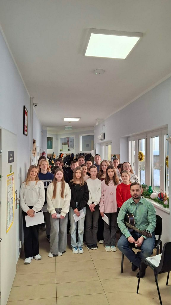 Dnia 16 stycznia uczennice i uczniowie klasy 6a pod opieką pana Piotra Przyrowskiego udali się do Dziennego Domu Seniora w Gorlicach na spotkanie integrujące pokolenia. Jak zawsze przyjęto nas z uśmiechem, życzliwością i radością. Wspólne śpiewanie na wszystkie głosy żeńskie i męskie, wysokie i niskie, dziecięce i dojrzałe rozbrzmiewało w gościnnej sali Dziennego Domu Seniora. Przy akompaniamencie gitary z wielu ust popłynęły najbardziej znane polskie kolędy i pastorałki. Radość spotkania wytworzoną naturalnie podczas integrującego muzykowania podkreślił także słodki poczęstunek, jakim uczniowie zostali obdarowani przez seniorów na koniec. Dziękujemy za ten piękny, wspólny czas.