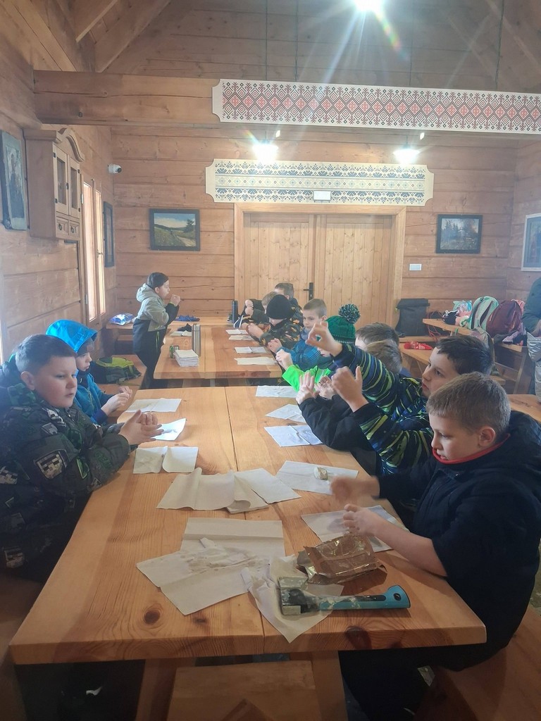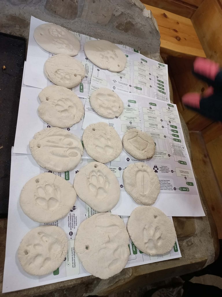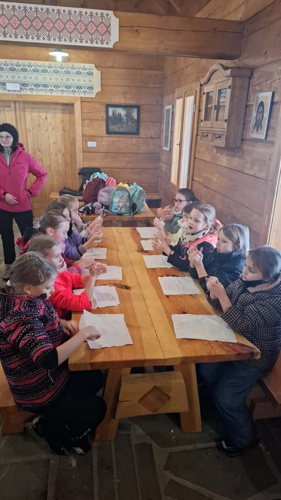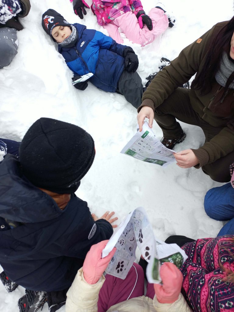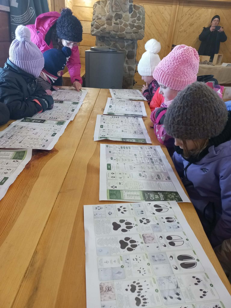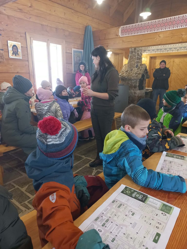 Wykorzystując dużą pokrywę śniegu w Beskidzie Niskim klasa 2B wzięła udział w zimowej lekcji przyrody. Tematem zajęć było rozpoznawanie tropów zwierząt. Pojechaliśmy więc na wycieczkę do Radocyny. W drewnianej chyży każdy przy swoim stanowisku formował krążek z gliny, w którym odbił formę z wybranym śladem zwierzęcia. Obserwując kształt śladu, wielkość,  licząc ilość palców i ewentualne pazury posługiwaliśmy się schematem-kluczem, aby przy pomocy pytań pomocniczych ustalić czyj to trop. Potem młodzi przyrodnicy-tropiciele z mapkami wyruszyli w teren. Śnieg był głęboki, a tropów znacznie więcej niż się spodziewaliśmy. Ależ to było ciekawe i zaskakujące! Okazało się np. że niedźwiedzie nie śpią! Po zajęciach przyrodniczych odbyła się bitwa śnieżna oraz lepienie bałwanów.W międzyczasie na piecu wyschły gliniane tropy i każdy z wysuszony medalion zabrał ze sobą. Kontynuując współpracę z Nadleśnictwem Gorlice bardzo dziękujemy za zorganizowanie kolejnej lekcji przyrody.