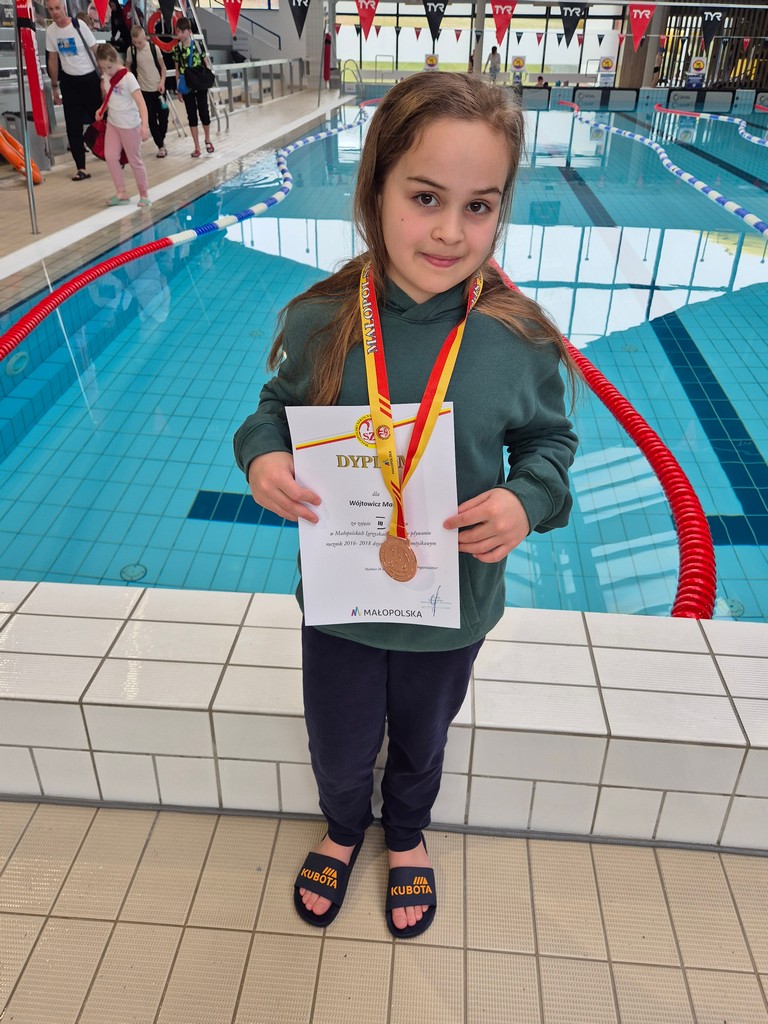 W dniu 26 marca na Krytej Pływalni w Myślenicach odbyły się finał wojewódzki w pływaniu indywidualnym i drużynowym. Wspaniały sukces odniosła uczennica naszej szkoły Marysia Wójtowicz, która zdobyła brązowy medal na 25m stylem motylkowym.