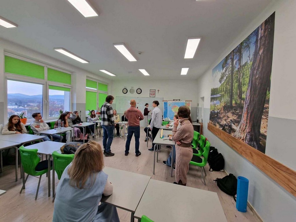 Program wizyty był niezwykle napięty i obejmował szeroki wachlarz zajęć. David i Miguel mieli okazję uczestniczyć w lekcjach prowadzonych przez naszych pedagogów, co było świetną okazją do wymiany spostrzeżeń na temat metod dydaktycznych. W planie znalazły się między innymi: matematyka, fizyka w nowoczesnej ekopracowni, informatyka, obserwacja lekcji języka angielskiego i niemieckiego, plastyka, muzyka, historia, technika, a także edukacja dla bezpieczeństwa oraz geografia.